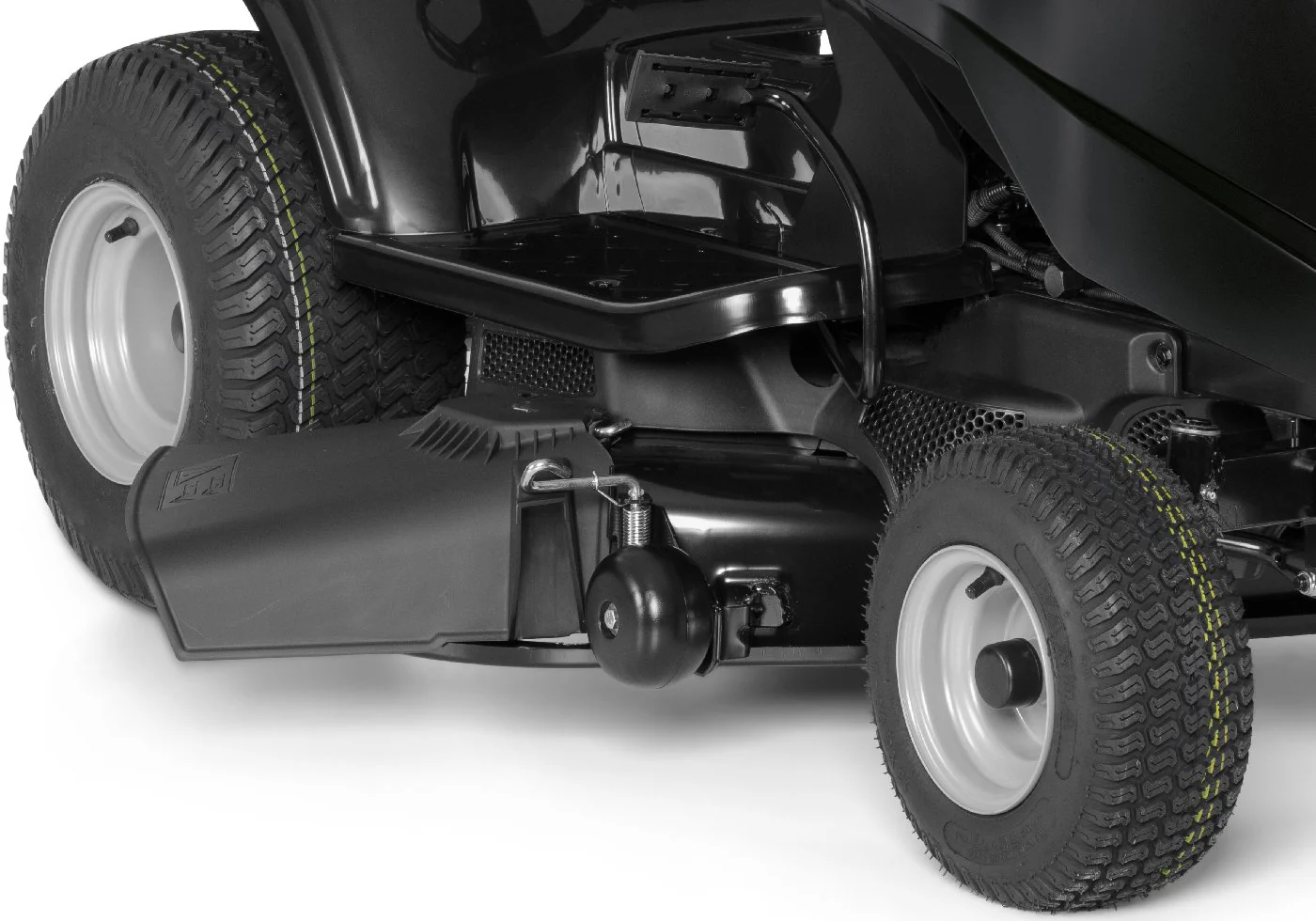 The steel cutting deck and reinforced chassis ensure long-term durability, even under frequent or heavy use. Maintenance is simplified with easily accessible service points, and the hydrostatic transmission requires minimal adjustment, enhancing uptime and operational efficiency.