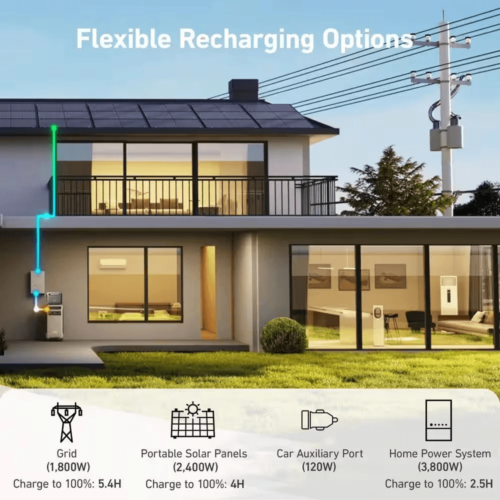 Seamless Home Integration: Can connect to home circuits for whole-house backup power.