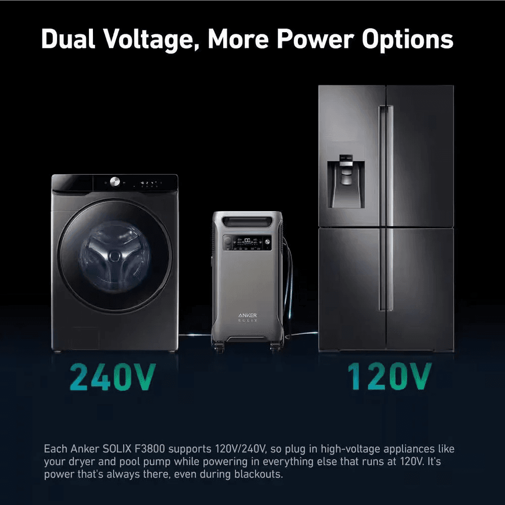 Equipped with 6000W of continuous power and a 9000W peak surge capacity, the Anker SOLIX F3800 can power large appliances, tools, and entire home circuits with ease.