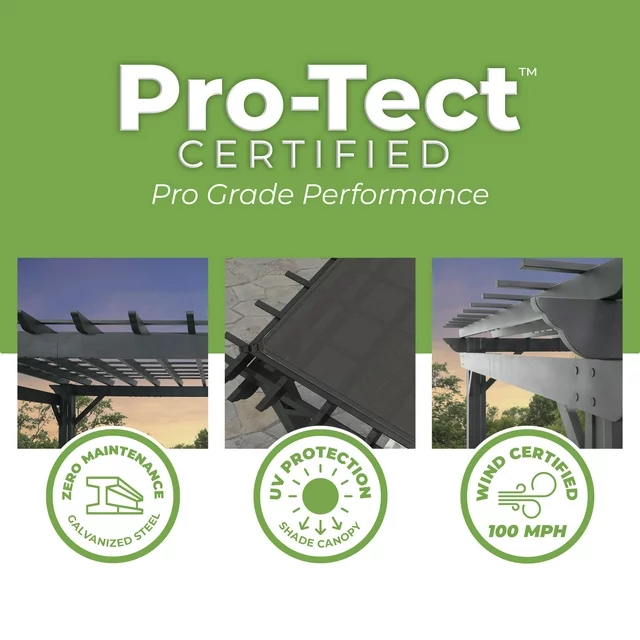 • Steel frame provides superior durability compared to wood or composite pergolas.
