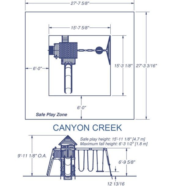 The natural cedar finish provides a classic, visually appealing aesthetic that blends seamlessly with outdoor environments. Designed to meet or exceed residential playground safety standards, the Canyon Creek Swing Set ensures that children can play confidently while parents enjoy peace of mind. Its robust construction and weather-resistant design make it a long-lasting addition to any backyard.