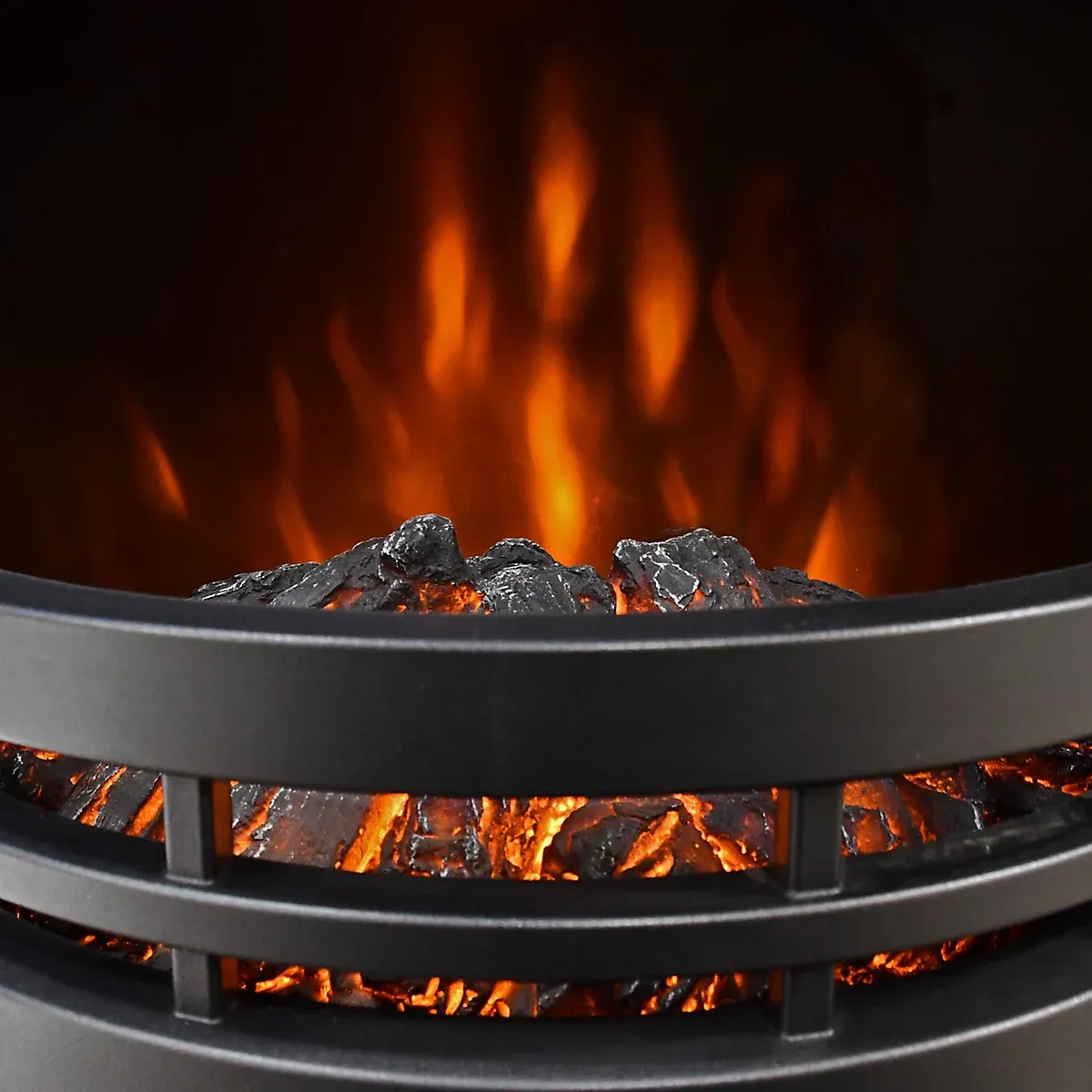 With a 2kW heat output, the Orba electric stove provides efficient supplemental heating for small to medium-sized rooms. Its matt black finish adds a refined, understated look, while the realistic flame effect enhances the ambience of any room. As an electric unit, it requires no chimney, flue, or fuel storage, offering a clean and convenient heating alternative.