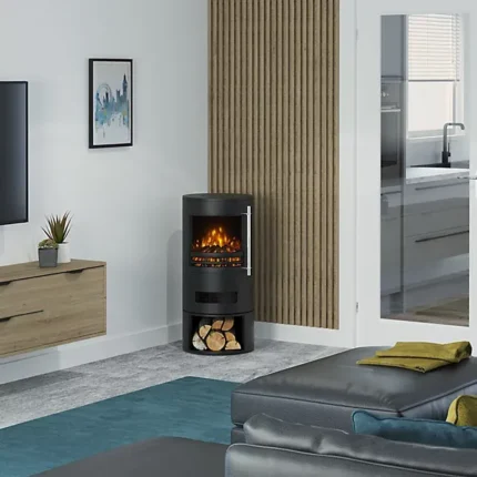 Featuring Dimplex’s Optiflame LED flame effect, the stove creates a realistic and inviting fire appearance without the need for fuel, smoke, or ventilation. With an adjustable 2kW heater, it provides effective supplemental heating for small to medium-sized rooms while offering year-round ambience through flame-only operation.