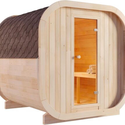 ScandiCube Comfort Wooden Barrel Sauna 42 mm Wall Thickness, 204 x 225 x 212 cm