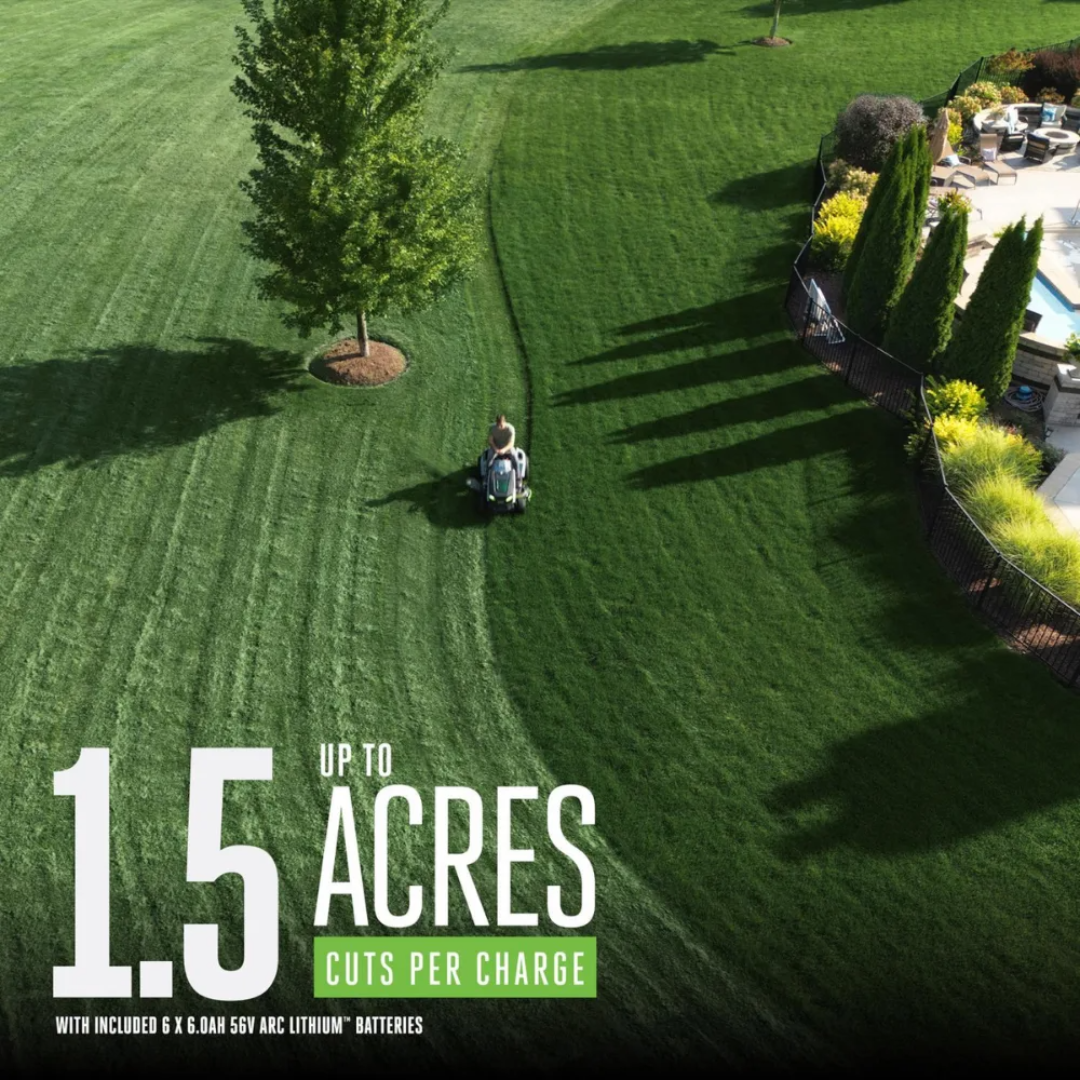 The EGO POWER+ T6 TR4204 42-In. 56V Battery Riding Mower Kit & Battery Charger represents the next generation of lawn care equipment. By combining powerful, eco-friendly performance with advanced battery technology and superior operator comfort, this mower offers an unmatched mowing experience that’s both sustainable and highly efficient.