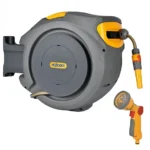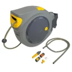 Designed for wall mounting, the reel provides a neat and organised storage solution while ensuring the hose is always ready for use. The automatic rewind mechanism gently retracts the hose with minimal effort, reducing strain and preventing kinks or damage. With a generous 30-metre hose length, it is ideal for medium to large gardens.