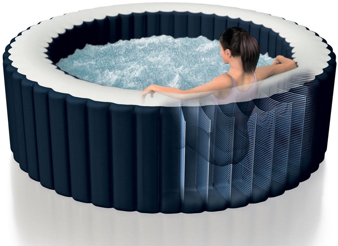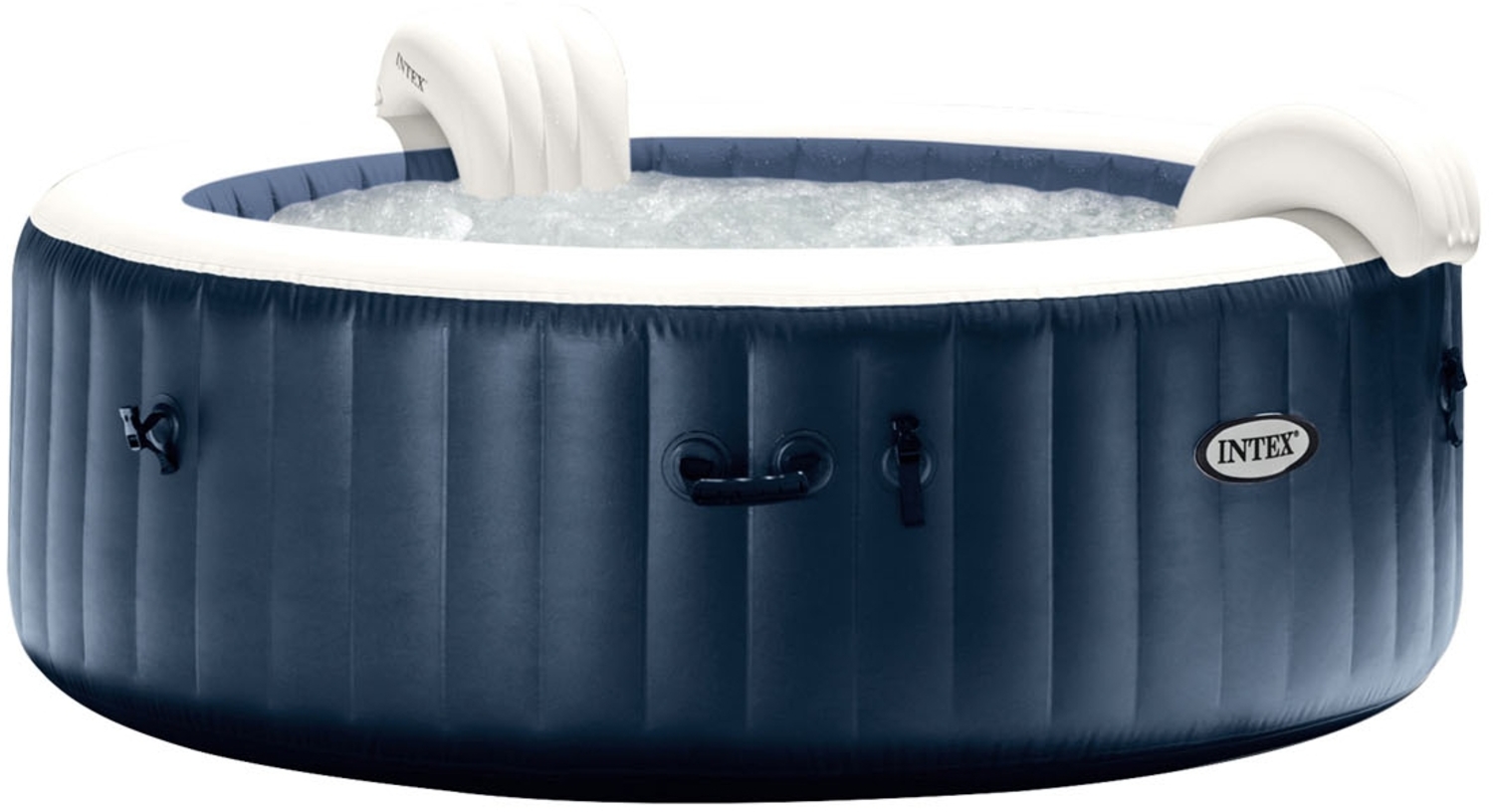 The Intex Pure Spa Plus not only enhances your relaxation but also complements your outdoor living space with its elegant navy blue design and refined style. This model ranks as a bestseller among whirlpools and is praised for its performance, comfort, and durability.