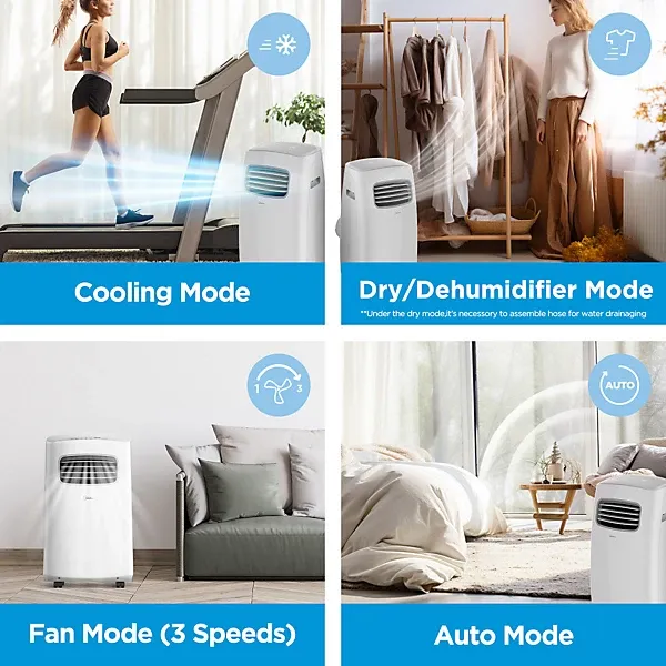 Equipped with smart home compatibility, this portable air conditioner can be managed through a mobile app, enabling temperature adjustments, mode selection, and scheduling from anywhere. The included window kit ensures easy setup and effective ventilation, allowing the unit to operate efficiently right out of the box.