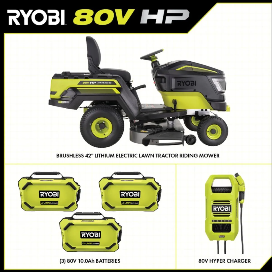 RYOBI 80V HP 42″ Lithium Electric Riding Lawn Tractor – Power Without Compromise