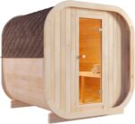 Bring authentic Scandinavian wellness to your backyard with the FinnTherm ScandiCube Barrel Sauna, a masterpiece of craftsmanship that blends traditional sauna culture with modern cubic design. Built from untreated Nordic spruce, this premium outdoor sauna delivers both natural beauty and exceptional durability.