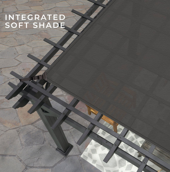 Stratford 14 Ft. X 10 Ft. Black Steel Traditional Pergola with Sail Shade Soft Canopy $585.00