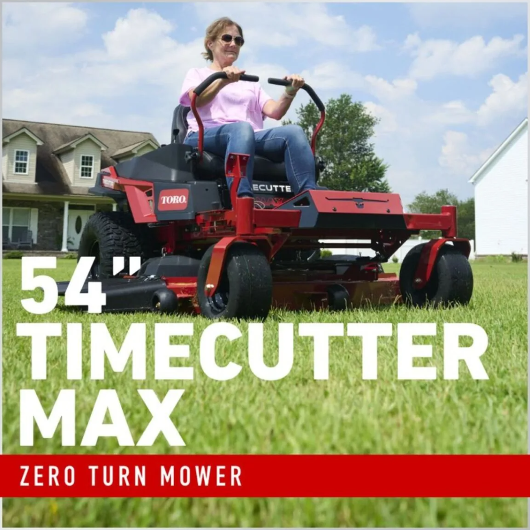 No matter how you cut it, the Toro TimeCutter MAX arms you with professional performance, rock-solid durability and best-grass-in-the-neighborhood precision. Built with over a century of pro-level engineering, this lawn-dominating machine features a heavy-duty IronForged deck, beefy, traction-happy tires, easy maintenance, and a plush, gaming-style seat to give you the edge over whatever nature throws your way.